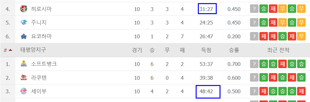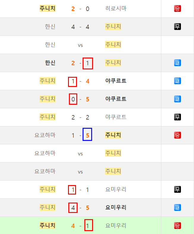 패배 패턴이 둘다 눈에 훤하네요. 특히 요코하마는 6득점이상 경기가 없다.