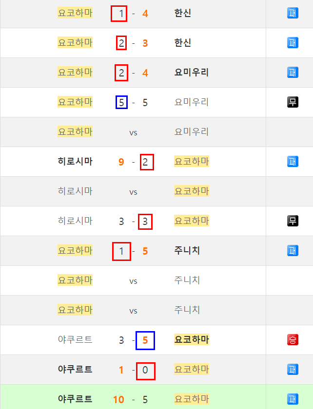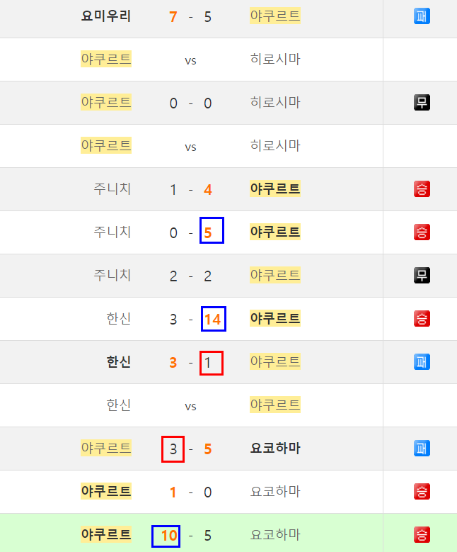 - 나오유키의 나쁜 야쿠르트 상대전적 = 난조가능성↑
