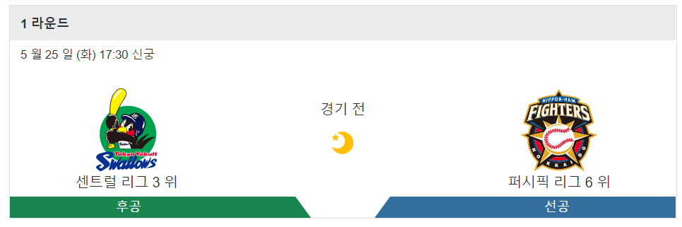 야쿠르트 스왈로즈(홈) vs 니혼햄 파이터즈(원정)