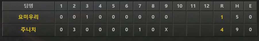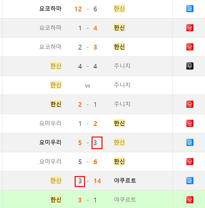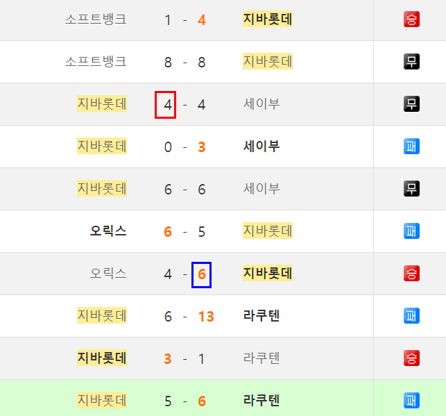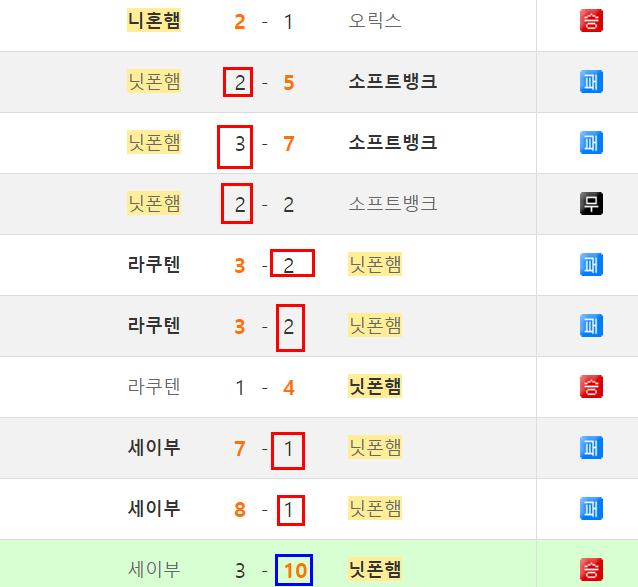 니혼햄 직전경기에서의 단 한차례 다득점경기전까지 4득점 이상 경기가 없었다. 일시적인 로또는 사양하겠다..