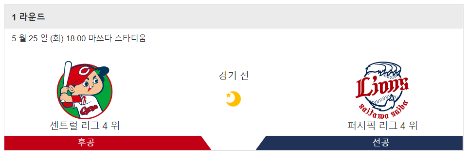 히로시마 도요카프(홈) VS 세이부 라이온즈(원정)
