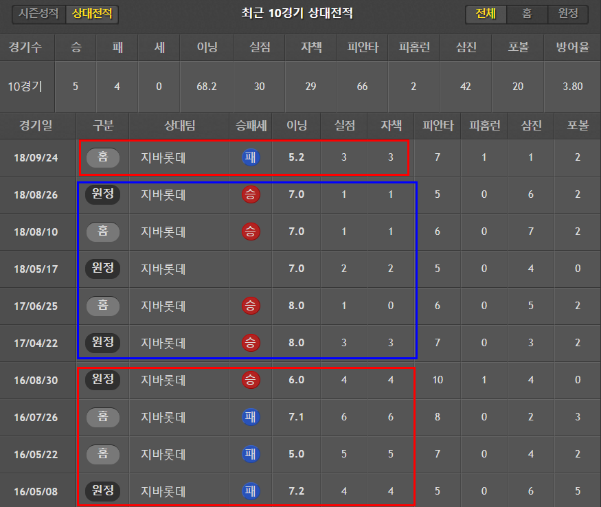 단, 한번 있는 무려 5년전 맞대결기록은 좋았었다.(과거형) 5년전에 '나 뭐했지...?'ㅋㅋㅋ 생각해보면 될듯. 의미없는 기록이란 뜻.