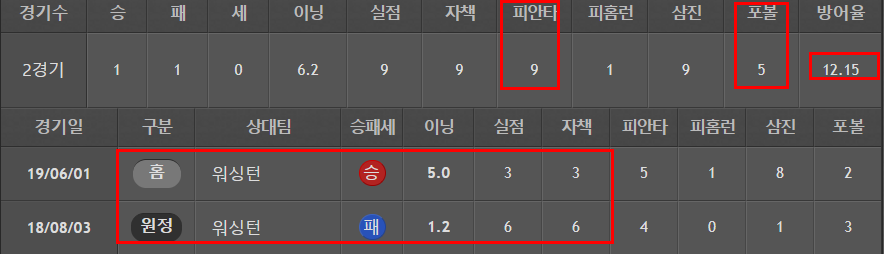 하지만 이번에 다시 등판한다해도 호투를 장담할수없을 정도의 처참한 5연속 강판 기록... 레전드...