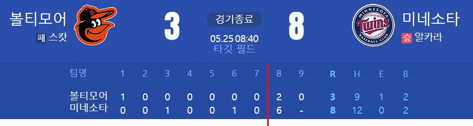 볼티모어의 삽질을 당해보니 왜 최하위권 팀인지 바로 알았다.. 무사 2루에서 진루타도 못치는 그지같은팀. 기본적인것을 못해주면 당연히 이길수가 없다는 사실을 박새로이 다시 뼈저리게 깨달았다. 이외엔 아쉽게 1점차로 패배한 경기니까 이정도는 뭐...