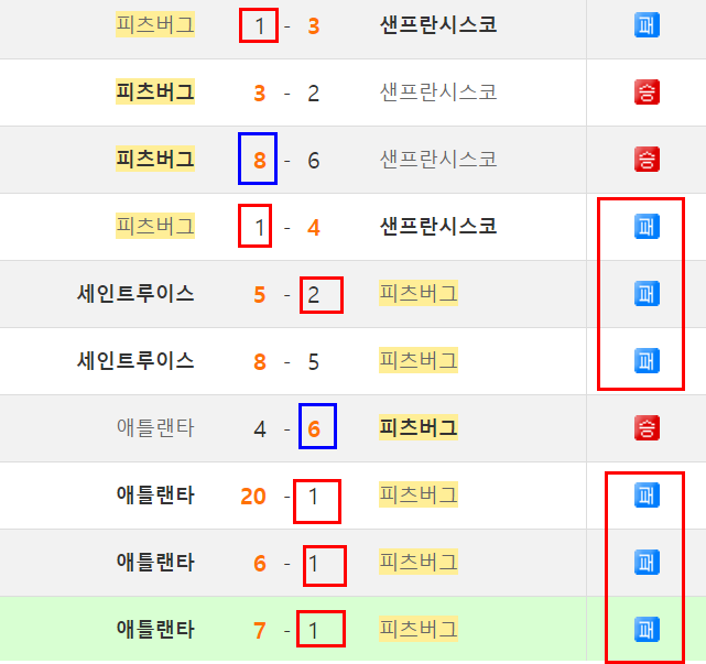 직전 세경기에서 1득점씩밖에 올리지못하고 있는 피츠버그