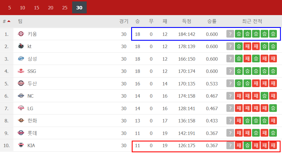 최근 10경기로 보나 선두와 꼴지의 대결이다.