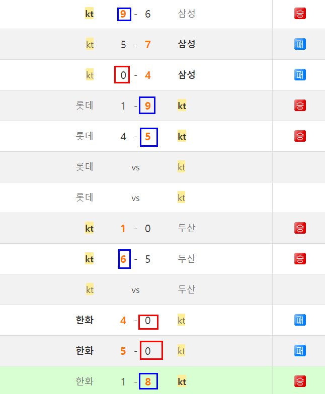 좋았던 흐름이 한화 김민우의 호투와 절정의 카펜터를 만나 흐름이 잠시 깨졌던 KT. 반면 슥은 승리는 모두 화끈한 타격으로 승리를 얻어냈다.