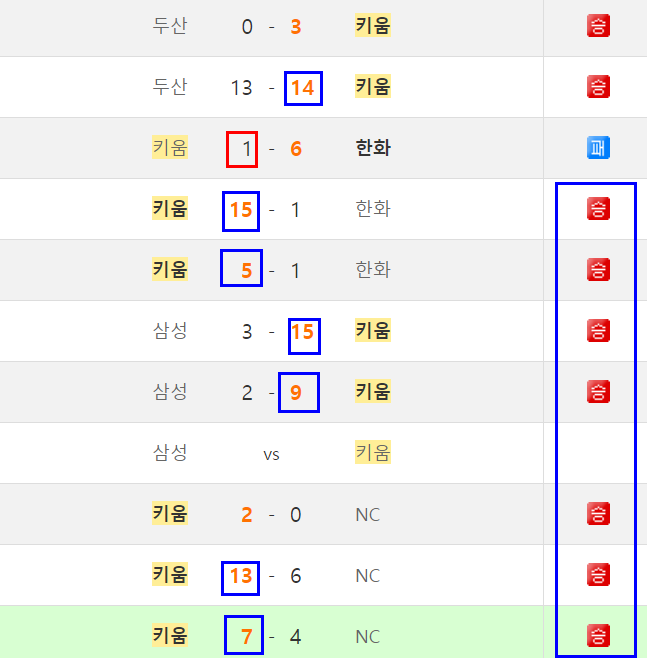 7연승의 키움. 대부분 다득점 경기로 승리할정도로 절정의 타격감을 과시하고 있다.