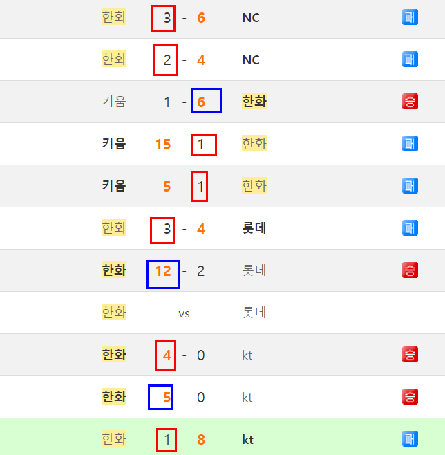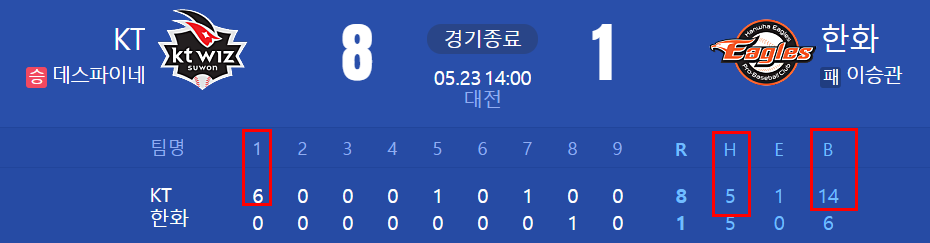 예상대로 이겼지만 되짚어봐야할부분은 KT의 안타가 겨우 5개밖에 안된다는점. 볼넷을 무려 14개 얻어냈지만 이는 KT가 잘한게 아니라 한화가 진짜 개못해서 이긴거다. 반성해야한다 KT