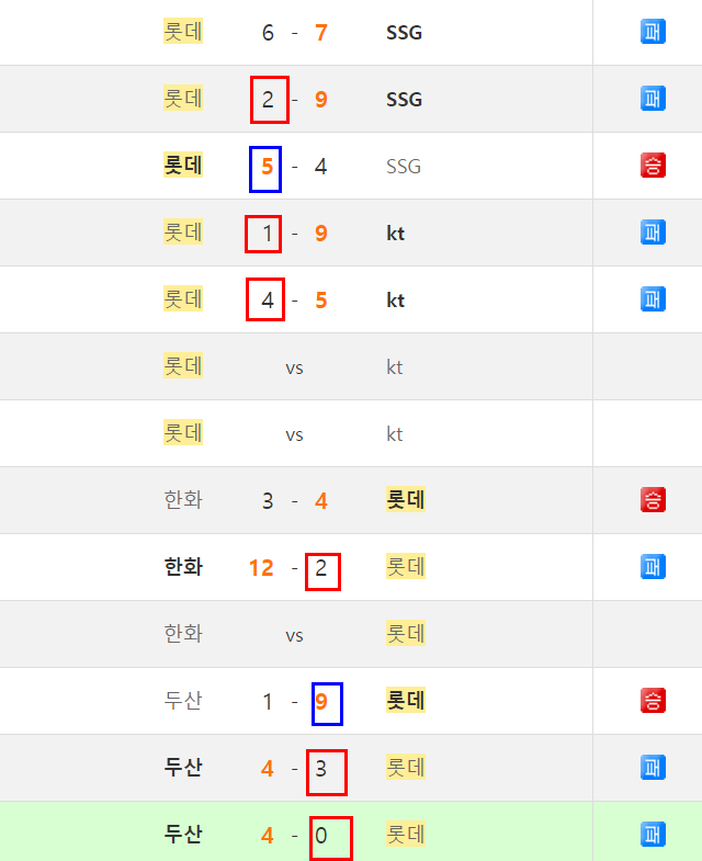 엘지의 4연패보다 더 심각한 롯데의 최근 행보.