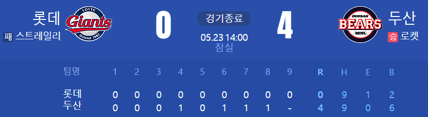 두산승. 적중 - 9안타 2볼넷으로 0득점에 성공한 어메이징 롯데