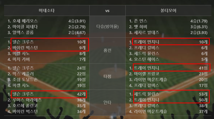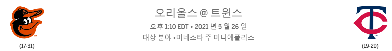 볼티모어의 9연패다. 볼티모어의 상대는 어지간하면 큰점수 차로 이길수밖에 없다. 미네소타 핸승.