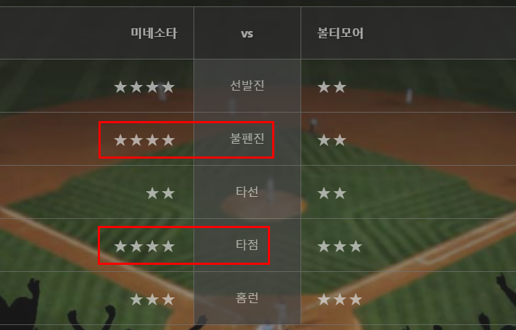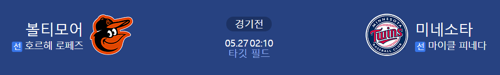 3연승 중인 미네소타. 볼티와의 3연전 마지막경기. 최근 홈런이 2개씩 터지면서 쉽게쉽게 점수가 나고있다. 오늘도 홈런이 나올가능성이 커보인다.