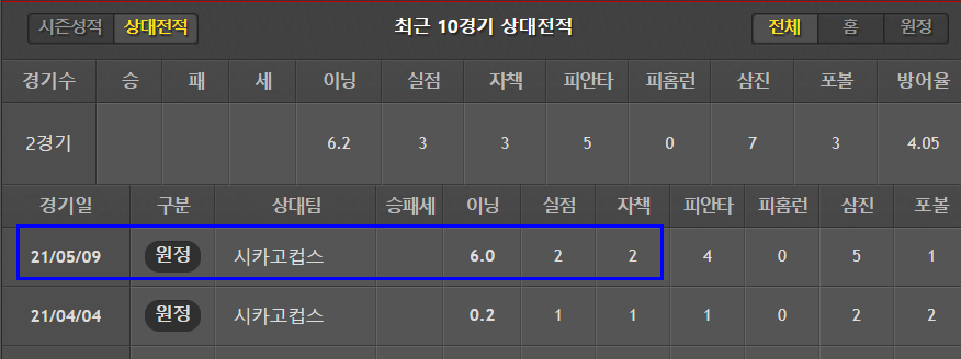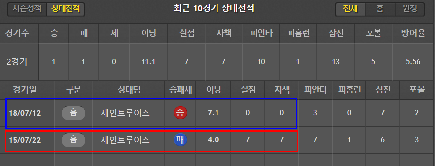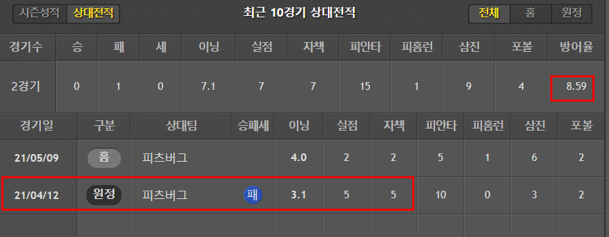 다좋은데, 이닝소화능력이 부족하고 볼넷이 너무 많은것이 흠. 맞대결전적은 1이닝 무실점 기록 하나 있음.