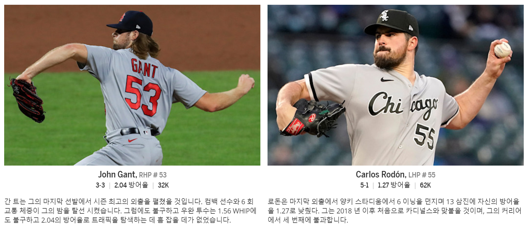 에이스 대결. 갠트는 왜 3승3패냐..