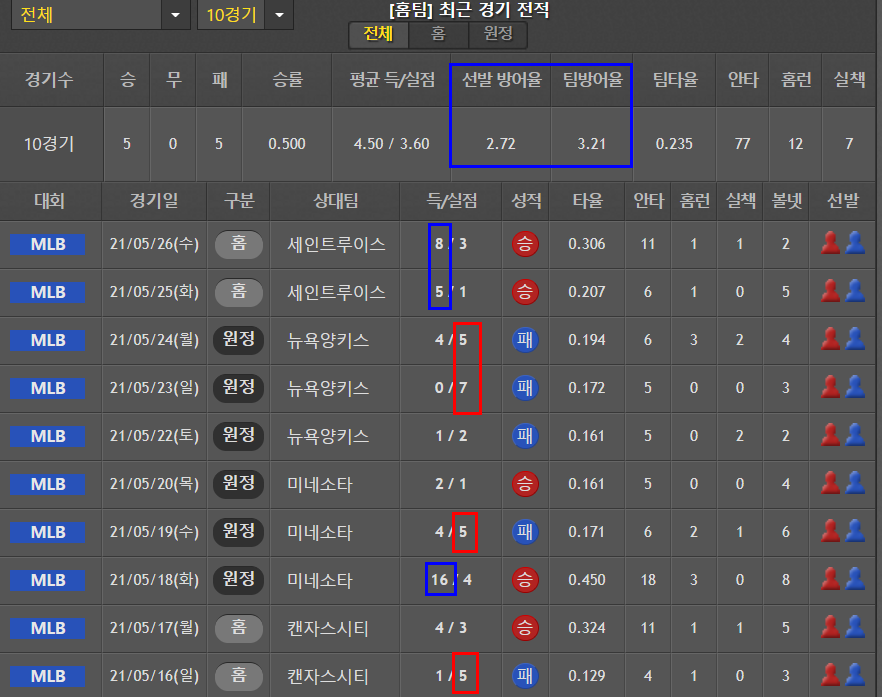 2021.05.26 - [야구/MLB 야구토토 분석] - 21.5.27(목) 야구토토 MLB 간단 분석 (3)