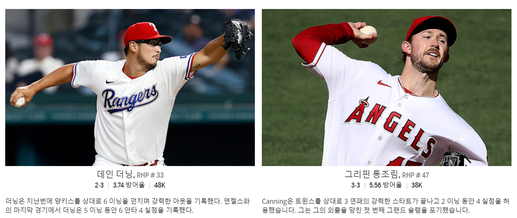 두투수 모두 불안감을 안고있다. 8.5오버의 냄새가 많이 난다. 그래도 텍사스 더닝쪽이 좀더 양호하지만 언제털릴지는 누구도 예상할 수 없다.