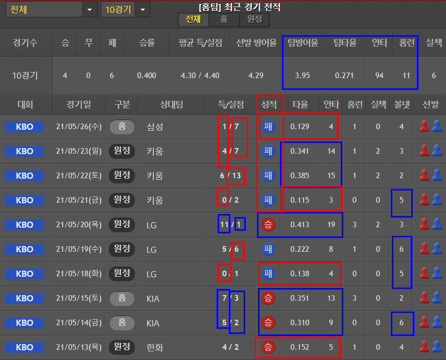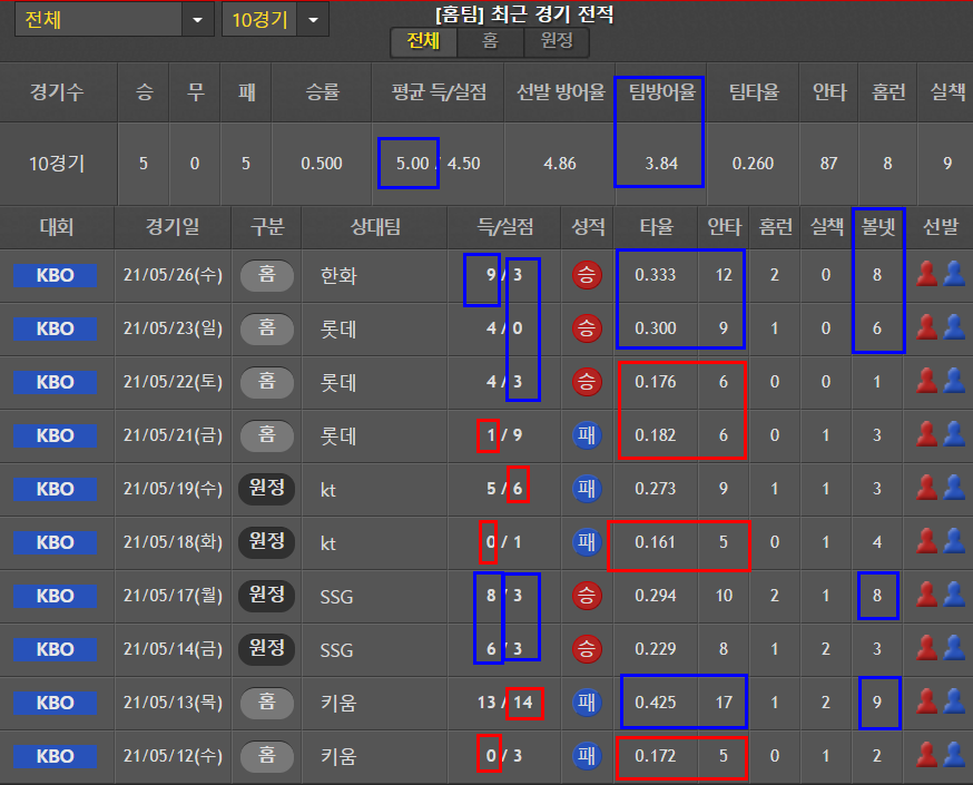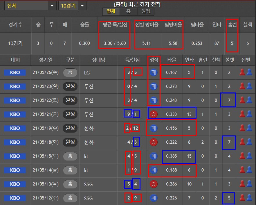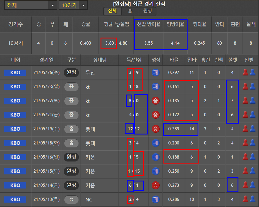 완벽한 투타의 질주를 하고 있었으나 코로나 백신 브레이크로 흐름이 끊겼다! 일시적 숨고르기일까?