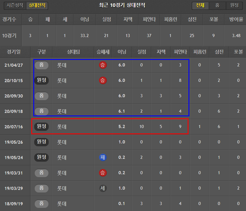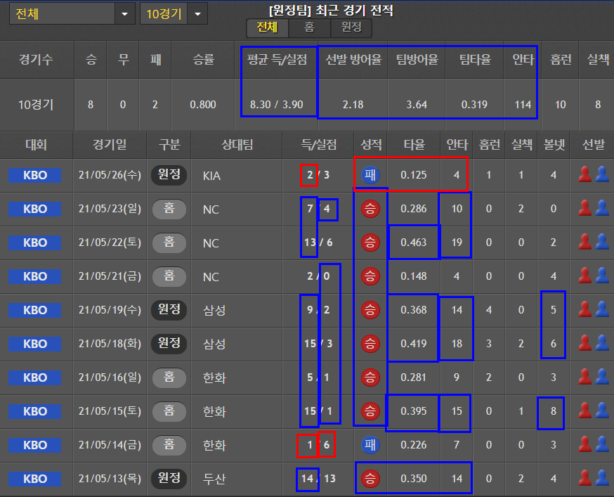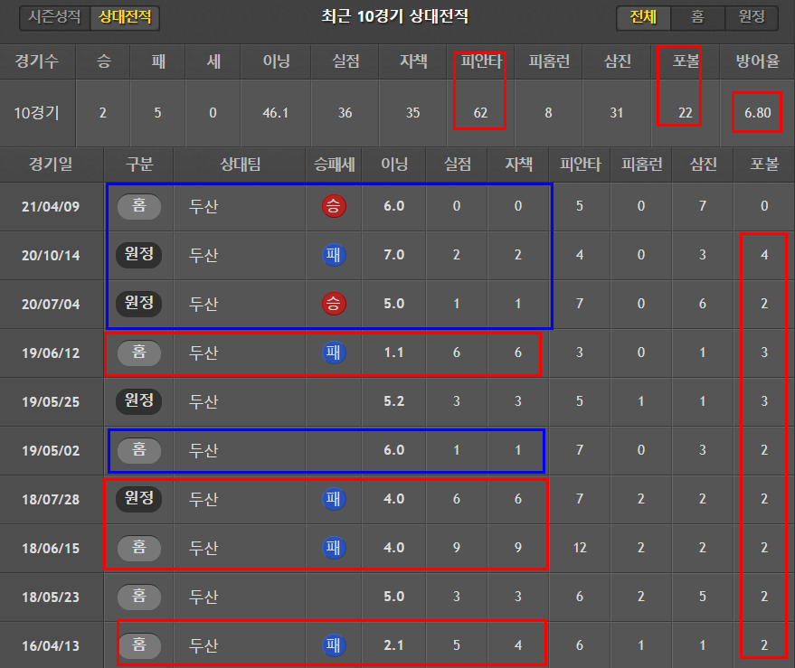 두산 상대로는 매우좋지않았는데, 최근 3경기는 매우 좋았다.