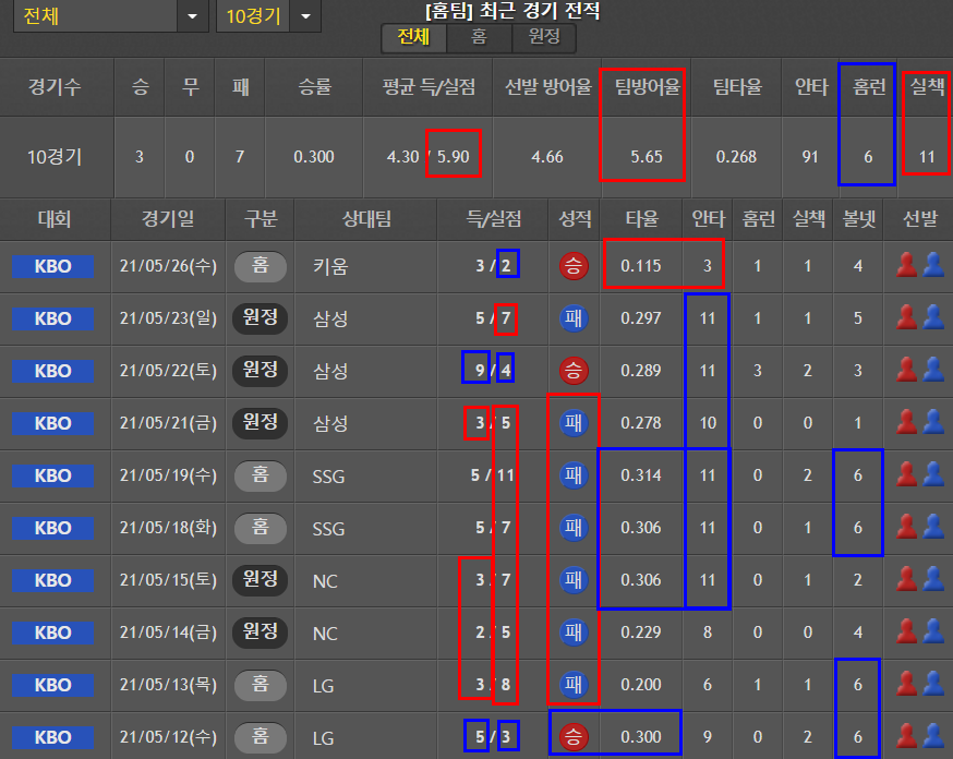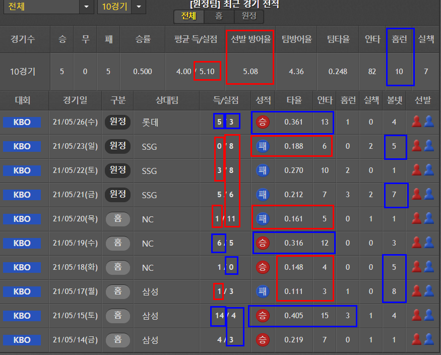 삼성은 추격조가 완전히 망가져서 지는게임은 완전히 대패하면서 상대타선의 스탯을 이쁘게 만들어주는 역할을 하고 있다.