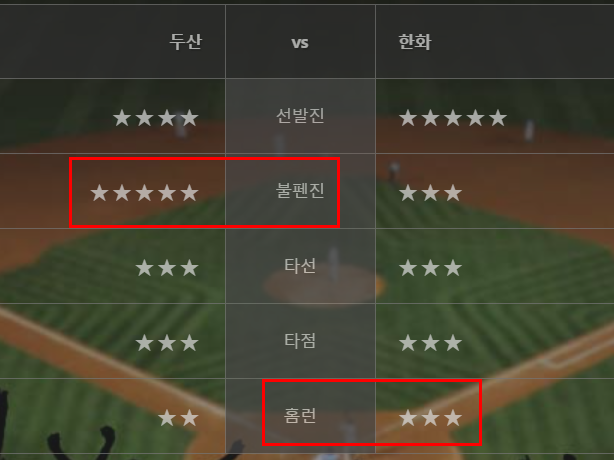 선발로 따지면 당연히 한화 김민우의 우세다. 문제는 김태형감독의 선발투수를 늦게 내리는 성향상 곽빈 교체시점을 언제로 잡느냐다. 물론 김민우도 부진하고 곽빈이 호투할 가능성도 있지만, 객관적으로 그 그림보다는 김민우의 호투가능성이 더 쉽게 그려지며, 필승조 강재민(평자0.81), 정우람(평자2.7)은 엘지못지않게 견고하기 때문에 오늘은 한화의 승리를 점쳐보겠다. 한화는 어제 3득점밖에 하지 못했지만 11안타와 3볼넷을 얻어냈다. 한화 승