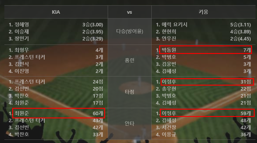 브리검과 이의리의 대결. 브리검이 복귀하고부터 키움은 날개를 달기 시작했다. 다시 좋은기운을 불어넣어줄수있을까? 이의리는 잠시 잠든 키움타선을 상대해야 한다. 돌다리 두들기는 심정으로 키움 타선을 넘어가보자.