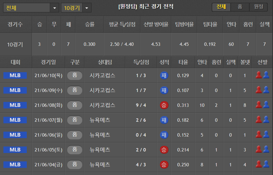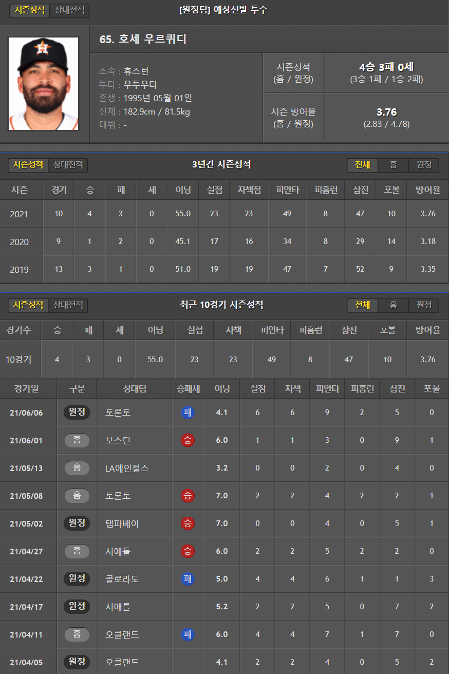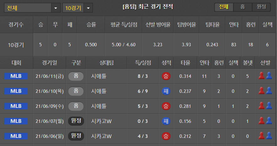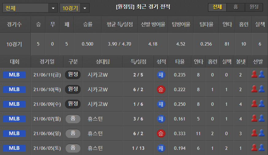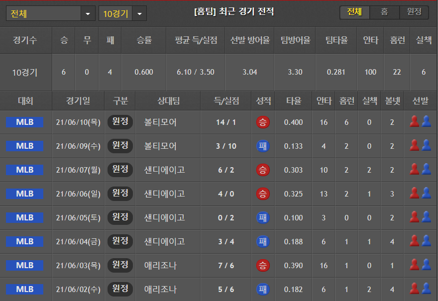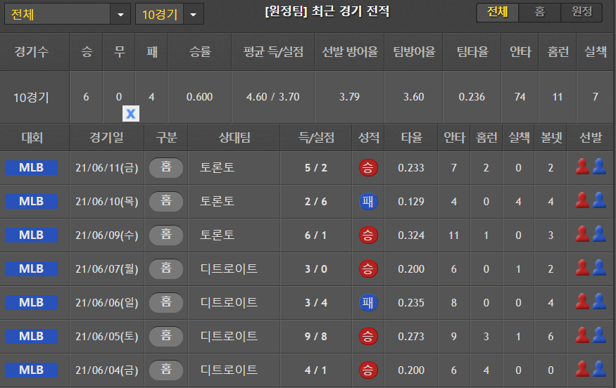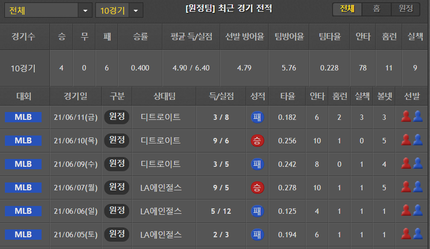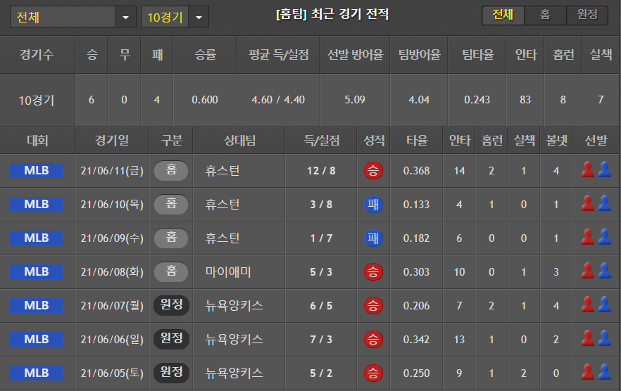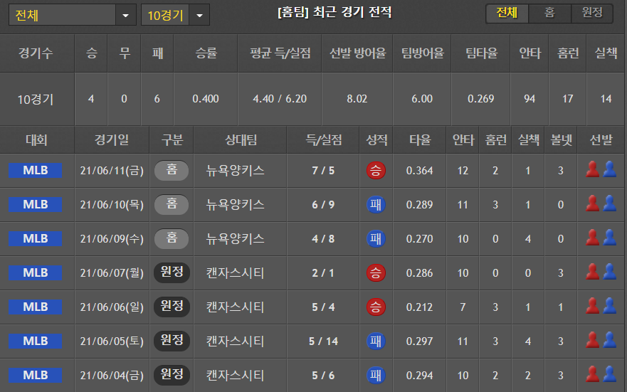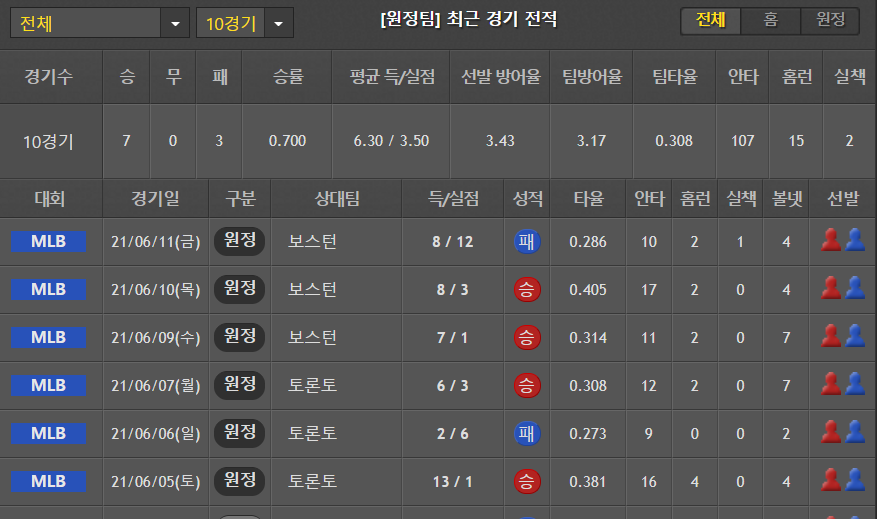2021.06.11 - [야구/MLB 야구토토 분석] - 21.6.12(토) 야구토토 MLB 초간단 분석(1)