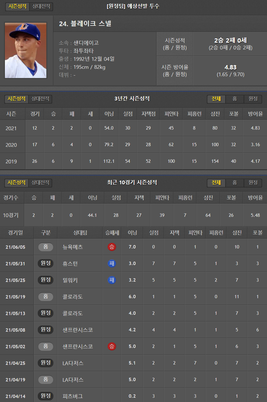 스넬이 어떻게 망투수가 되었나.. 다행히 직전 메츠전에서 7이닝 무실점 경기를 했다는 것이 변수!!