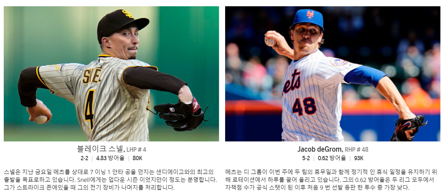 이 정도면 이름값만 놓고봐도 굳이 분석을 해야하나 싶을정도로 메츠의 압승이 예상되는 경기다.