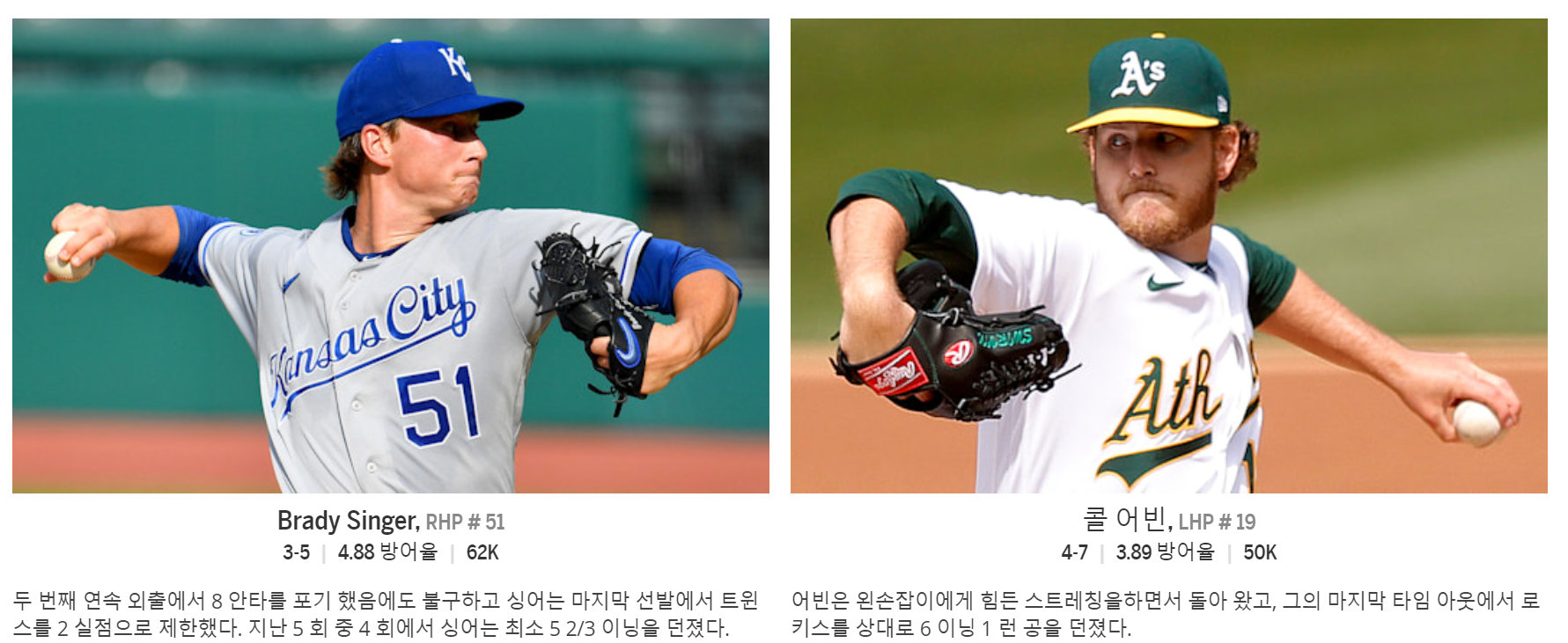 비록 오클랜드가 최근 승리의 기운을 갖고있고, 캔자스의 패배의 기운을 갖고있다. 하지만 승패를 떼고 투타의 과정을 살펴보면 오클이 앞설거라 단순히 착각할수있다. 1-5-4-1 득점 / 3-1-1-6 득점 최근 네경기로 자른다면 이게 양팀 타선의 현주소다. 어느 한쪽의 우세를 점치기 애매한 만큼 베팅은 하지 않는것이 좋다. 분위기에 취해서 오클에 베팅을 하느니 캔자스 역배승 2.05에 거는게 나을지도..