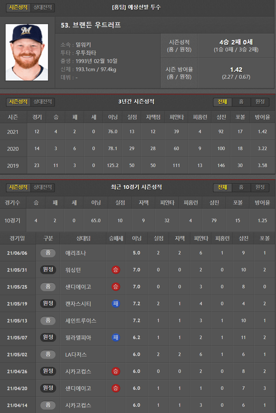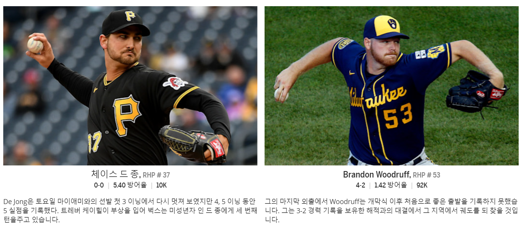 1.42의 우드러프와 압도적인 밀워키의 타선. 논할 가치가 없는 밀워키의 핸승이다.