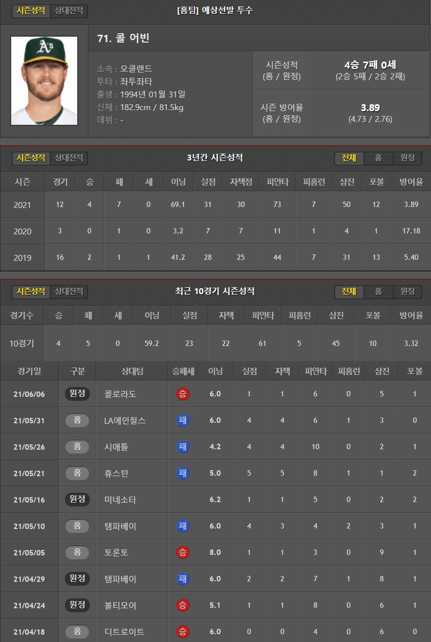콜어빈은 최근 난조에서 벗어나고 있는 중인데 작년 첫 맞대결에선 7이닝 1실점으로 호투했으나 아직 좀 더 지켜봐야 할것을 보인다.