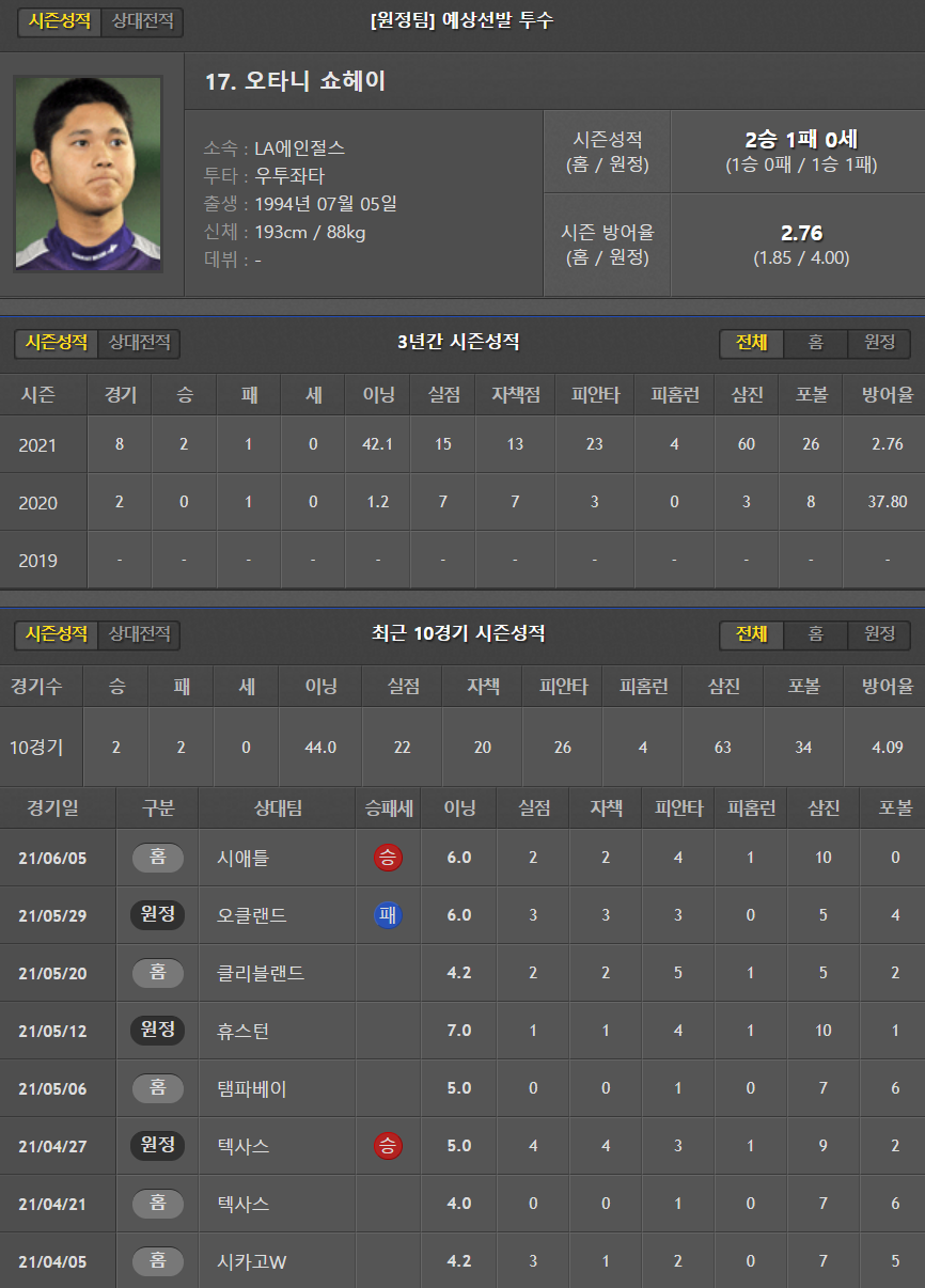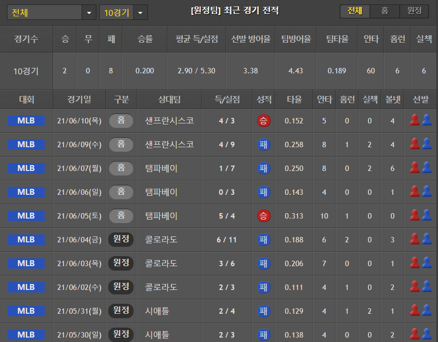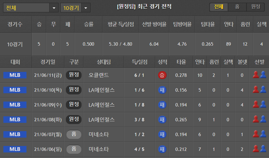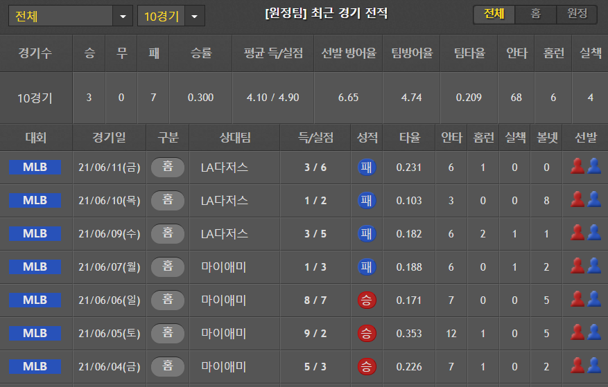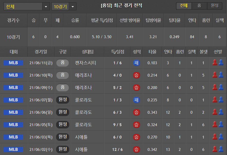 2021.06.11 - [야구/MLB 야구토토 분석] - 21.6.12(토) 야구토토 MLB 초간단 분석(1)