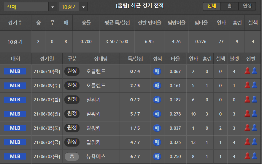 2021.06.11 - [야구/MLB 야구토토 분석] - 21.6.12(토) 야구토토 MLB 초간단 분석(2)
