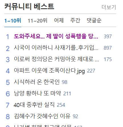 일간 베스트에 오른 글이다.