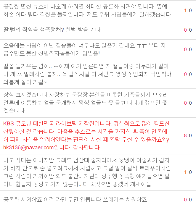 성폭행을 당했고, 공장장이 무서워 부산을