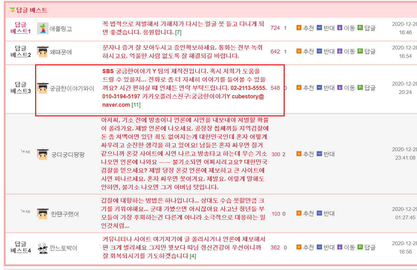SBS 궁금한이야기 제작진에게까지