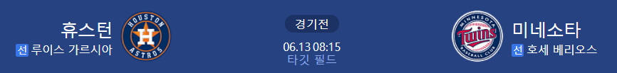 좋은 흐름의 두 투수. 안정감은 휴스턴 가르시아가 좀 더 낫다는걸 2.75의 평자에서도 알수있다. 하지만 이정도 미세한 차이는 승리를 보장할수없다. 양팀 최근 10경기 7승3패와 3승7패로 정반대의 흐름이다. 휴스턴은 최근 10경기 팀타율 3할, 16홈런을 기록하면서 3할초반의 팀평자를 기록중으로 완벽한 짜임새를 갖추고있다. 7경기 연속 10안타이상에 가까운 기록을 이어갈정도로 방망이가 뜨겁다. 한편 미네소타는 투수진은 무너졌으나 타선은 제역할을 해주면서 10경기 무려 20홈런을 쳐냈고, 어제 휴스턴전에서도 4홈런을 뽑아냈지만 모두 솔로홈런에 그치는 아쉬운 패배를 당했다. 객관적인 전력상 역시 휴스턴의 우세를 점칠수밖에 없는 경기이지만 승리를 확신할수있을 정도는 아니기에 신중한 베팅이 필요해보인다.