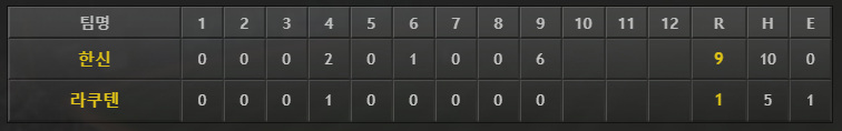 한신 마사시 이토는 7이닝 1실점으로 호투하며 승리를 챙겼다. 한편 라쿠텐 다나카는 7이닝 3실점으로 호투했으나 패전을 기록했다. 역시 이름값을 하려면 아직 부족한 느낌이다. 9회 등판한 라쿠텐 타쿠마는 1아웃을 잡는동안 5실점을 헌납하며 완전히 경기를 넉아웃당했다. 한신의 클린업은 모두 홈런을 쳐내며 타격감을 만끽했다.