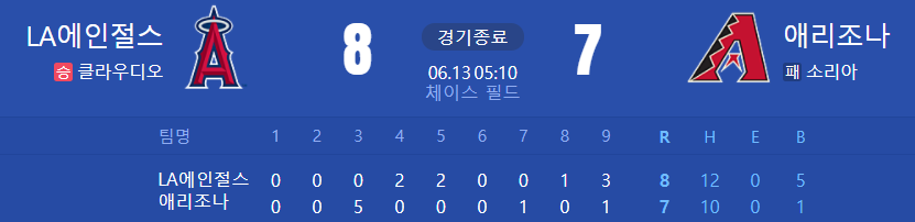 9연패의 애리조나 vs 5연승의 에인절스