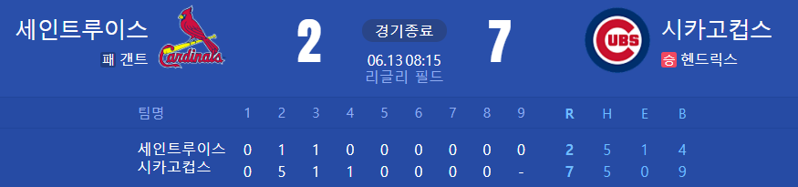 컵스 승. 핸승.