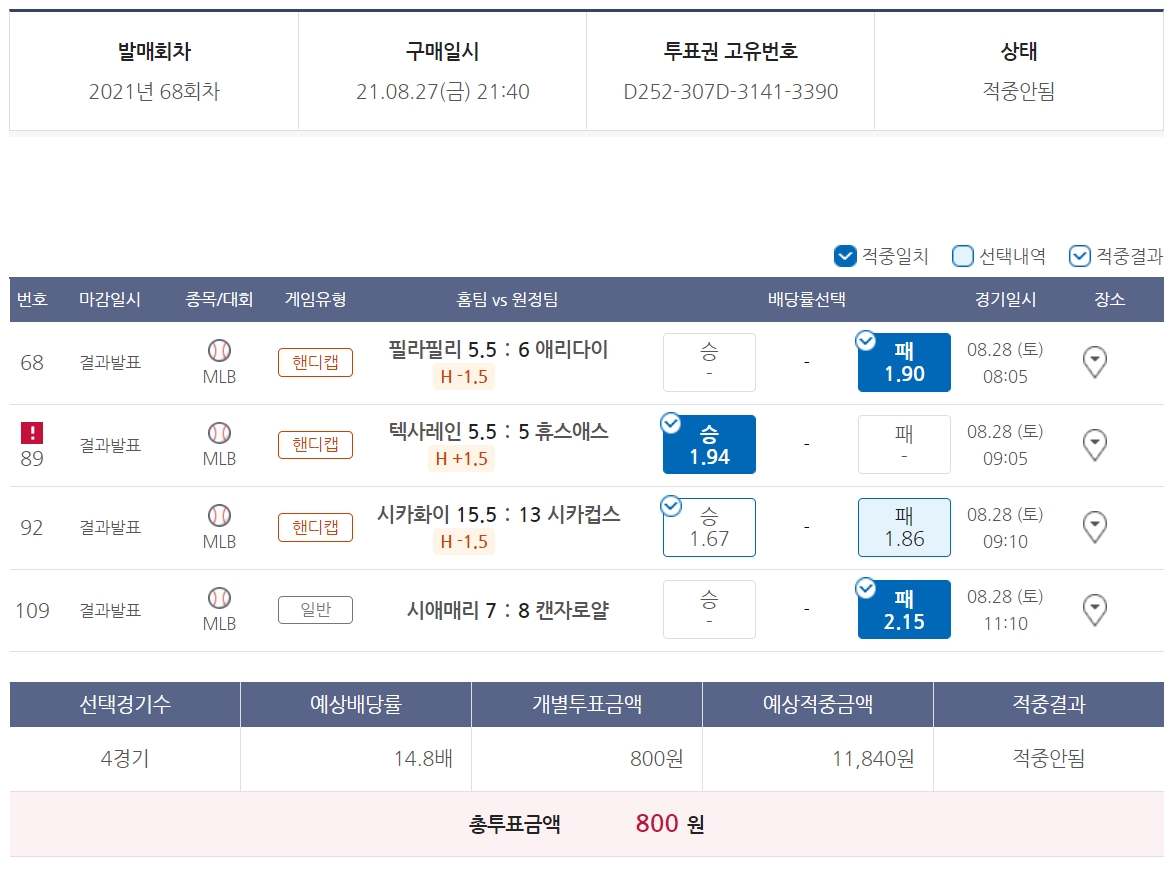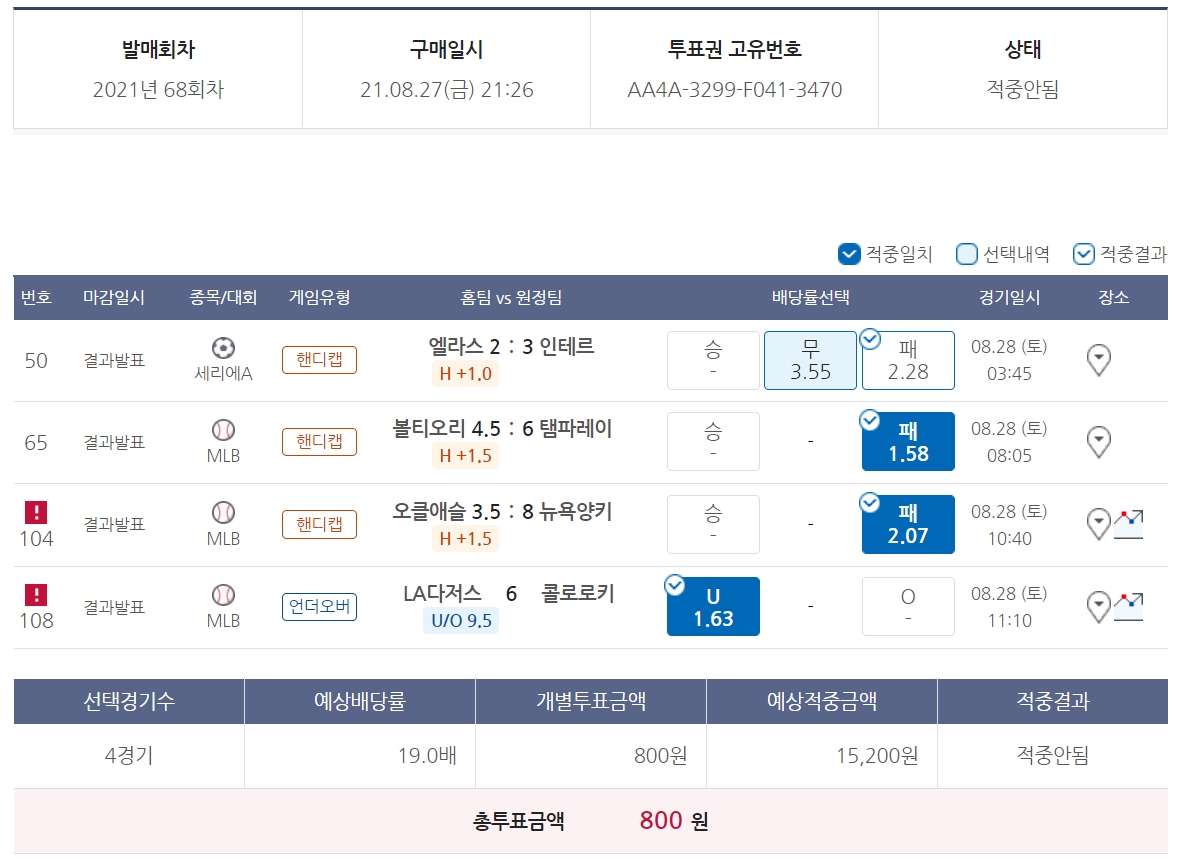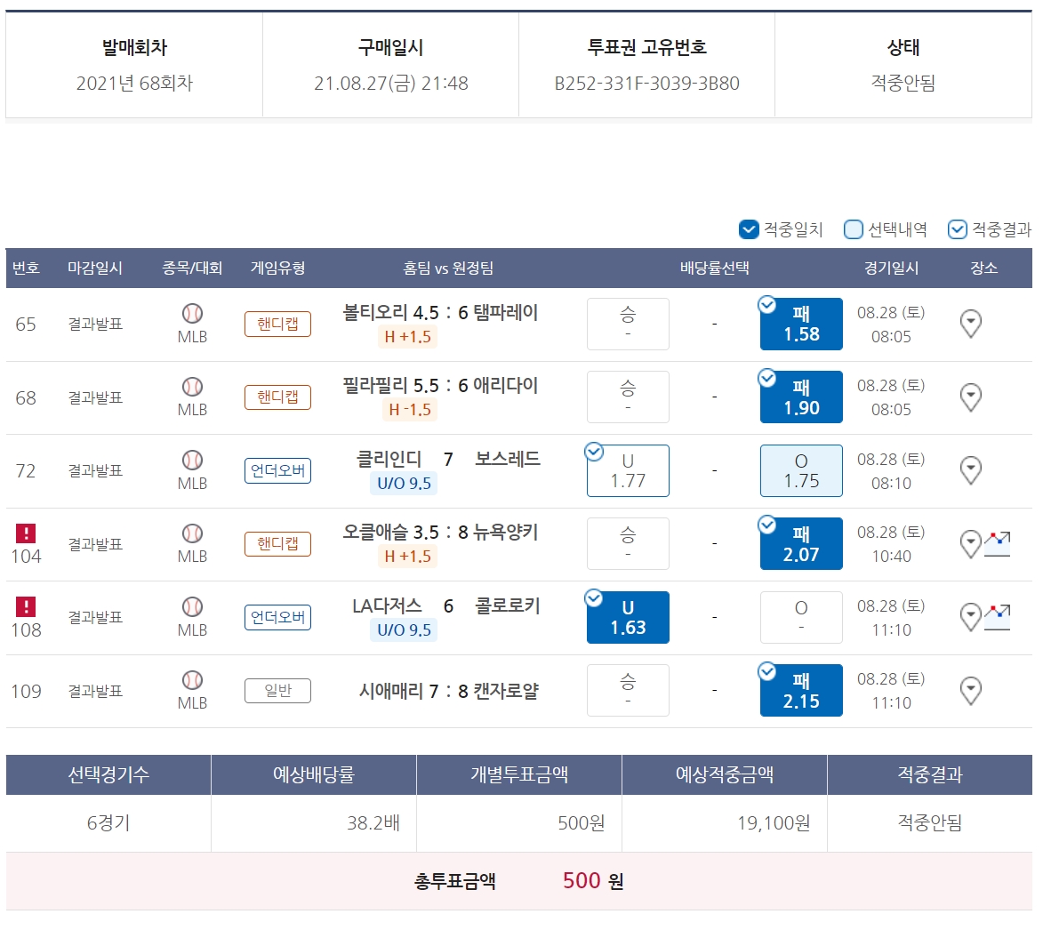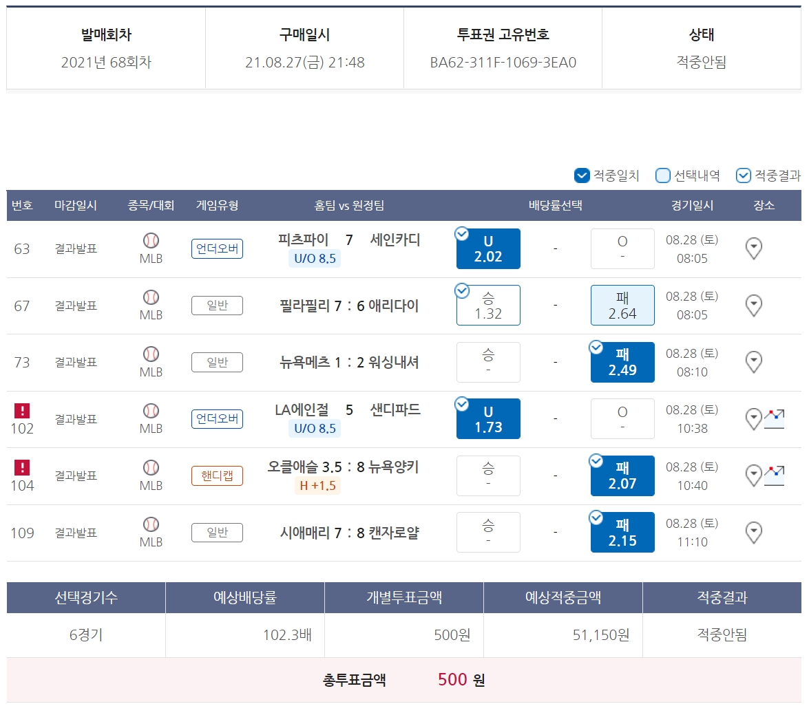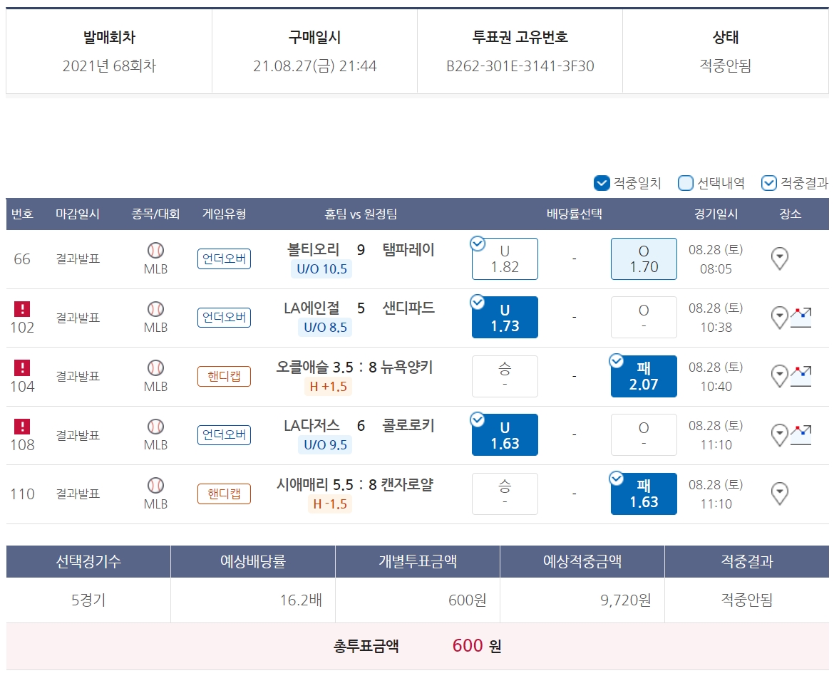 | 21/8/27 MLB 메이저 프로토 분석 (5) | 2021.08.27 |