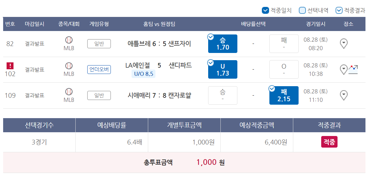 | 21/8/25 MLB 메이저 프로토 분석 (6) | 2021.08.25 |