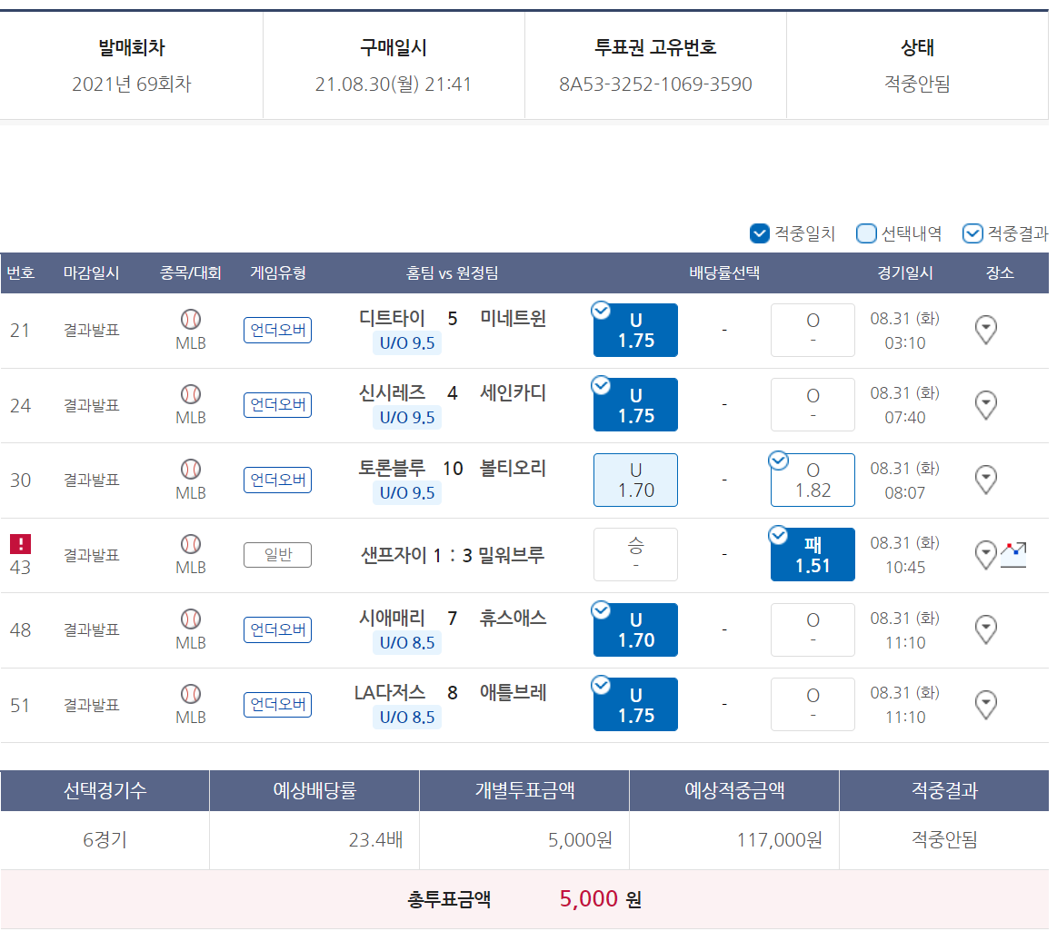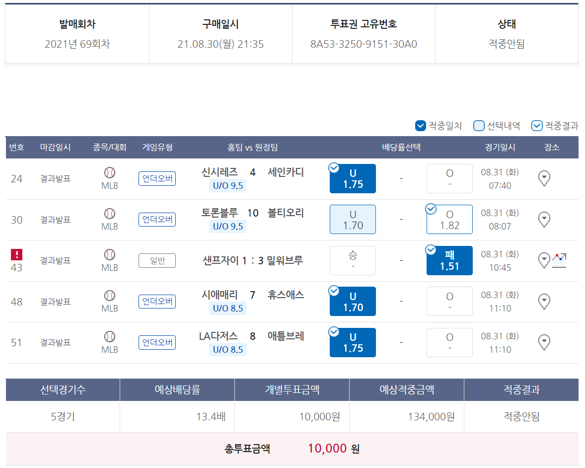 | 21/8/28 MLB 메이저 프로토 분석 (2) | 2021.08.28 |