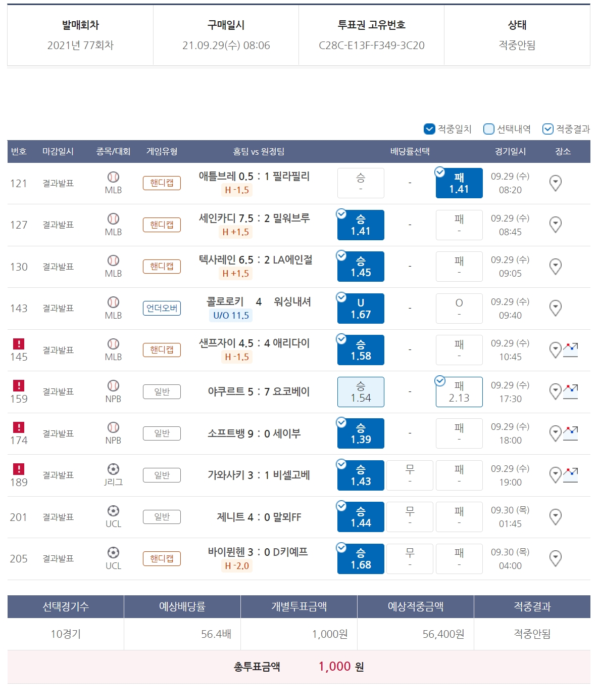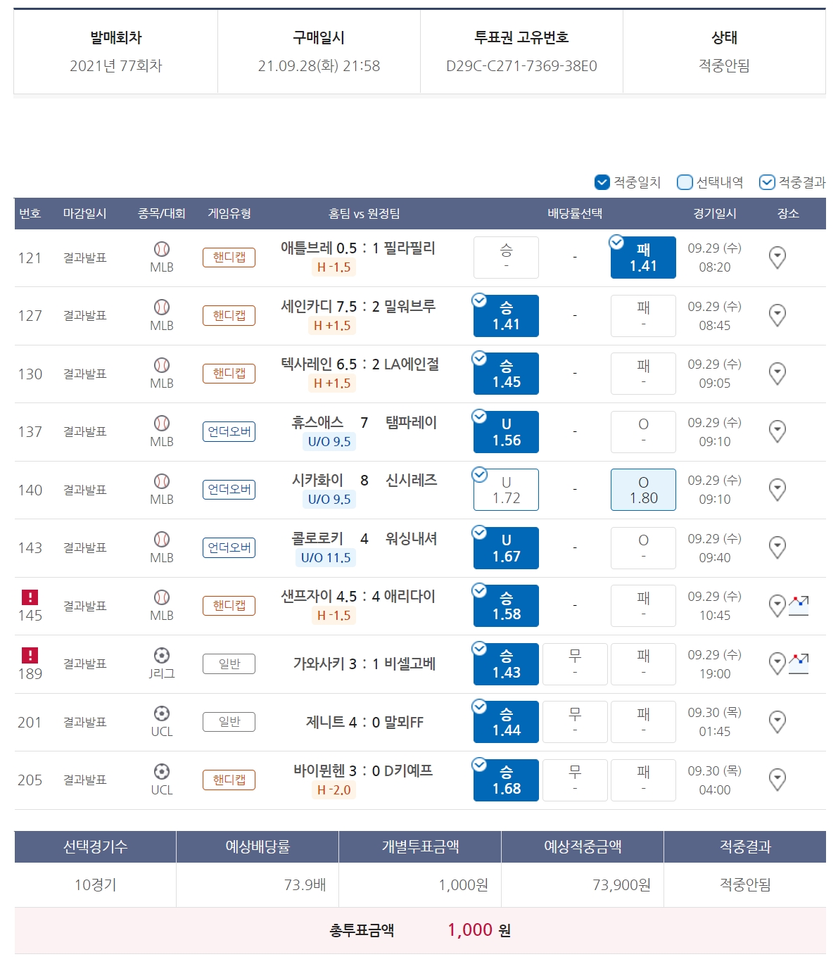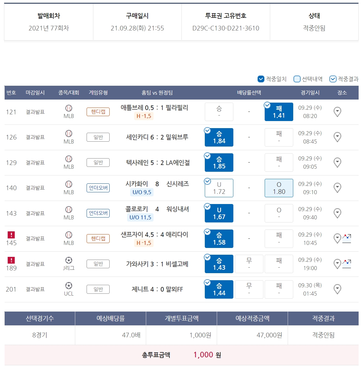 | (수정)79회차 프로토 메이저 플레이오프 와일드카드 결정전 분석 (19) | 2021.10.05 |
