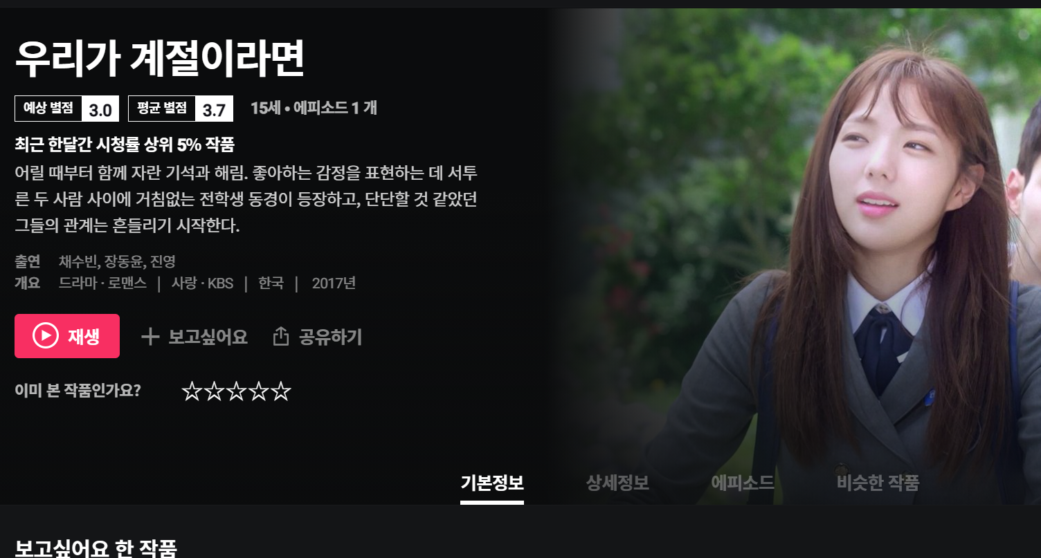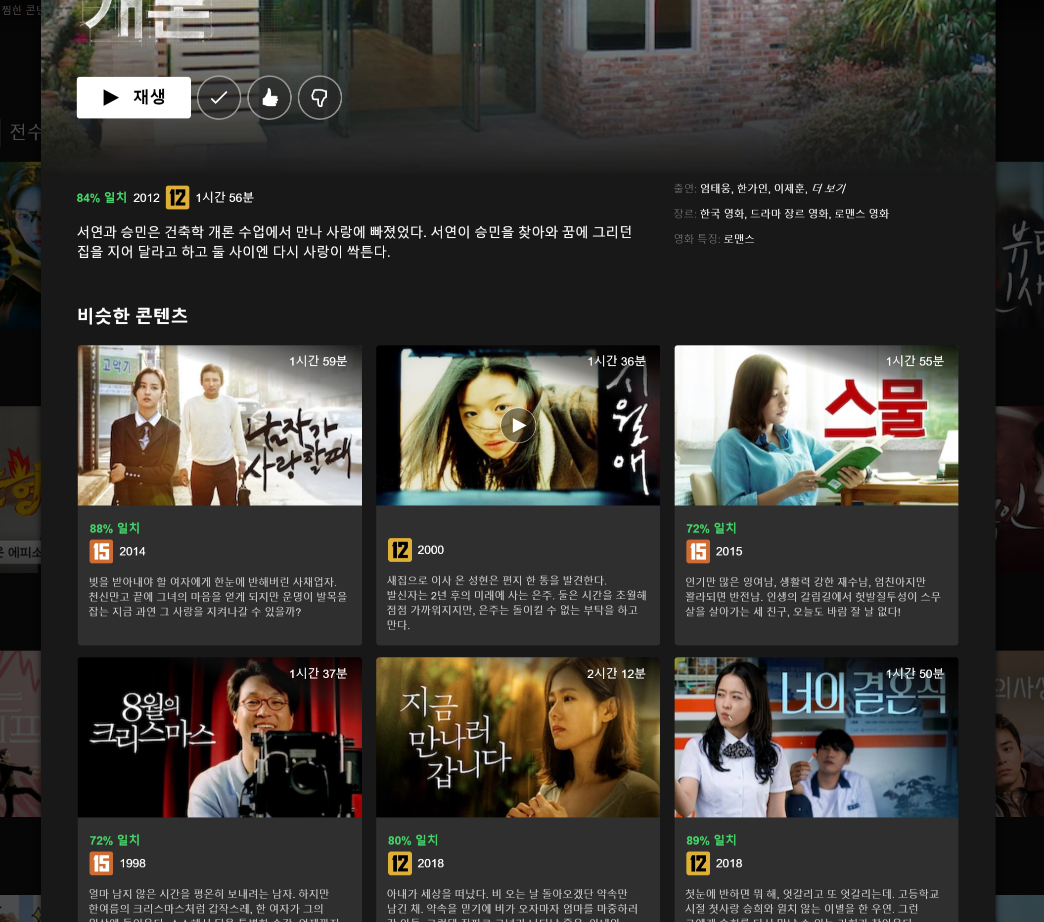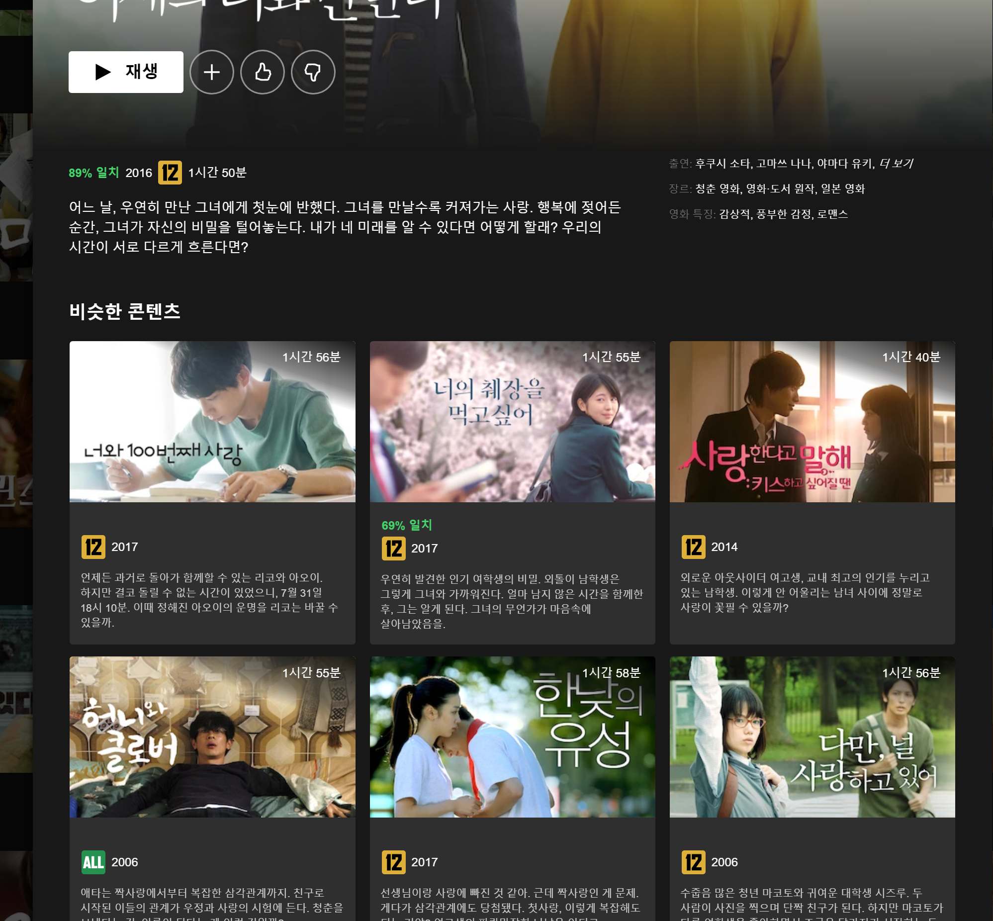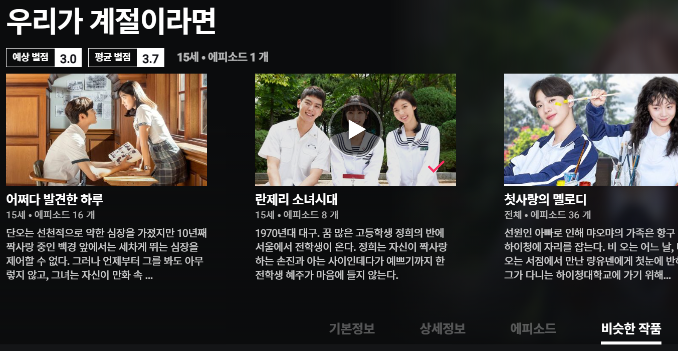 넷플릭스랑 똑같이 작품을 눌러서 비슷한 작품을 누르고