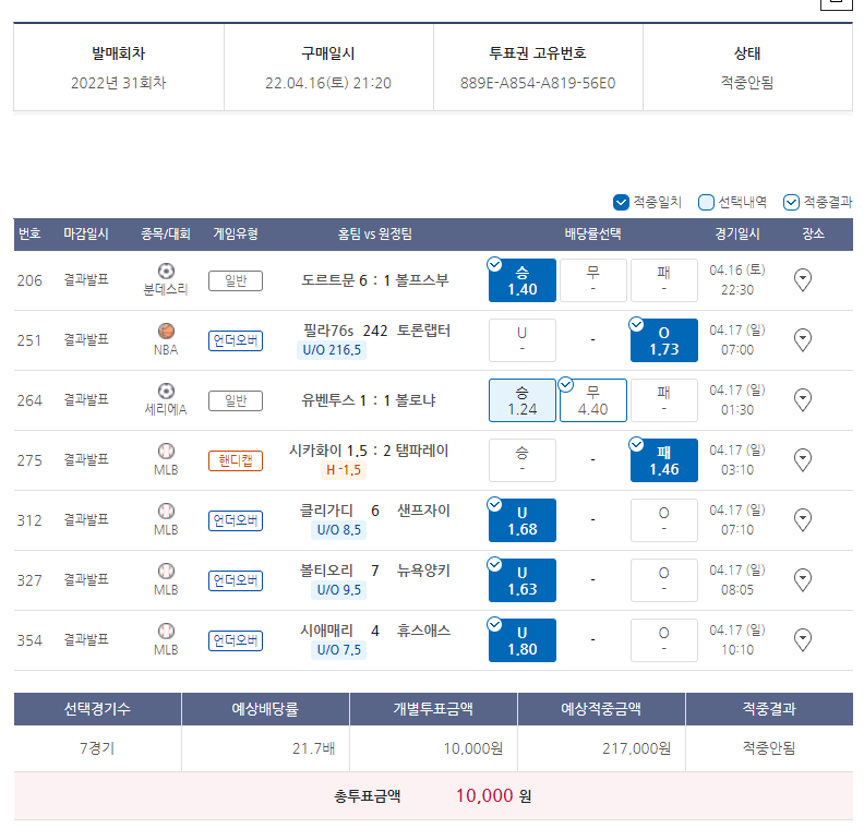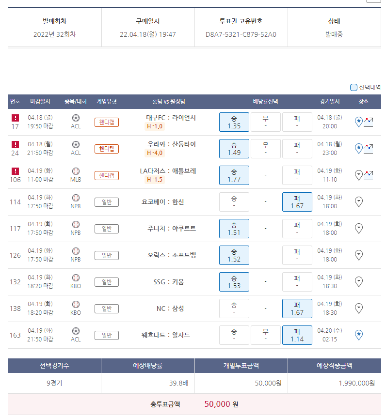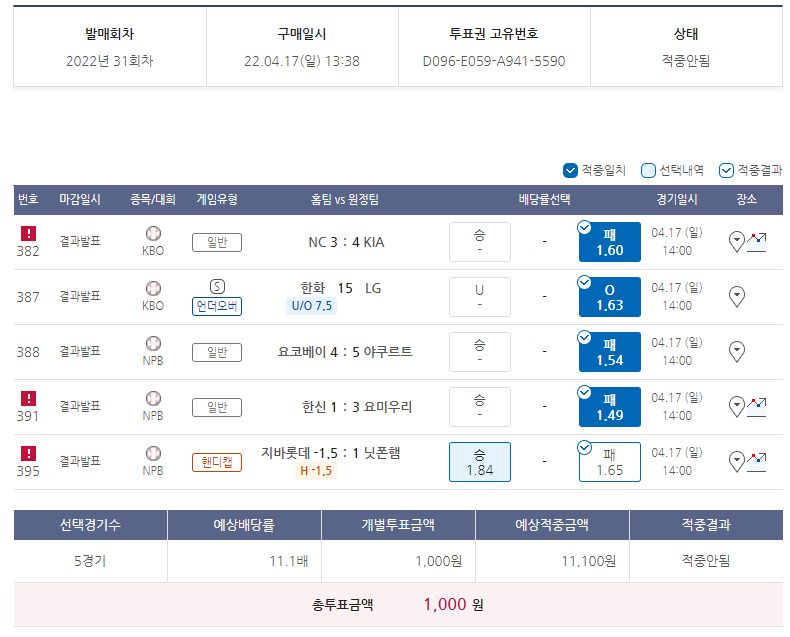 | 220427 승부식 34회차 야구토토 (2) | 2022.04.27 |