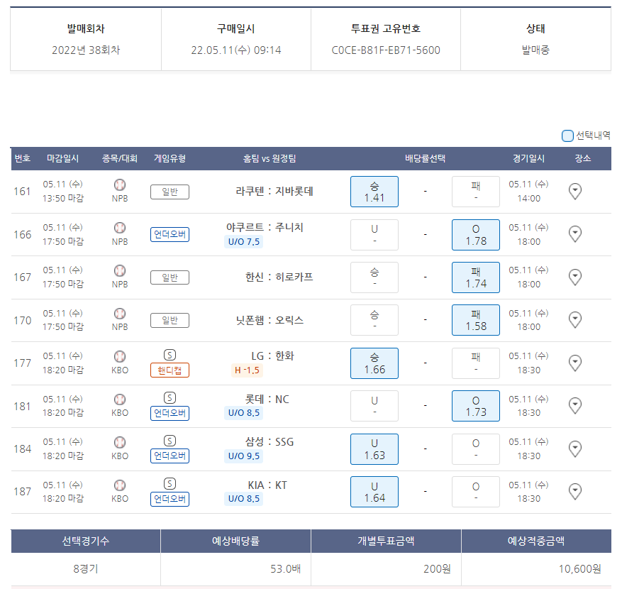 | 220402 프로토 27회차 NPB KBO (1) | 2022.04.02 |