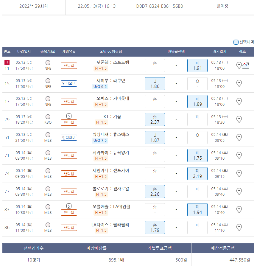 | 220515 승부식39회차 MLB (4) | 2022.05.15 |