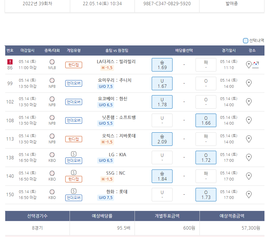| 220515 승부식39회차 야구토토 (3) | 2022.05.15 |